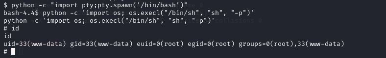 - setuid가 설정된 python 명령어로 root 쉘 획득
