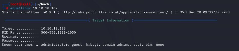 SMB(Samba) 프로토콜을 사용하는 시스템에서 정보 수집을 목적으로 설계된 툴 중 하나입니다. 주로 Windows 네트워크나 Samba 서버를 대상으로 사용되며, 해당 시스템의 사용자, 공유 리소스, 그룹 등과 관련된 정보를 수집할 수 있습니다.