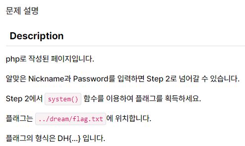 플래그는 ../dream/flag.txt에 위치해있다고 문제에 적혀있었지만 문제를 풀다보니 그런 힌트가 있는 줄도 까먹고 풀었다.
