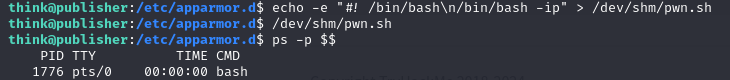 쓰기가 가능한 /dev/shm 폴더에 bash쉘을 실행하는 pwn.sh 파일을 만들고 실행했다.