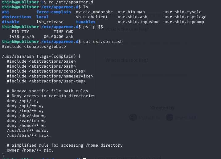 힌트를 보면 App Armor 라는 것을 확인해보라고 한다.