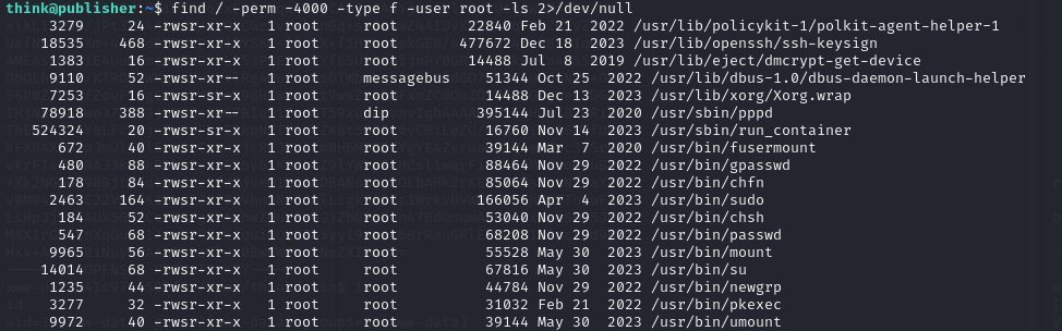 find 명령어를 사용하여 setuid 바이너리를 검색해봤다.