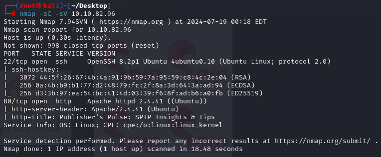 nmap을 이용한 포트 스캔 결과, 22번과 80번 port가 열려있다는 것 말고는 특이점은 없었다.